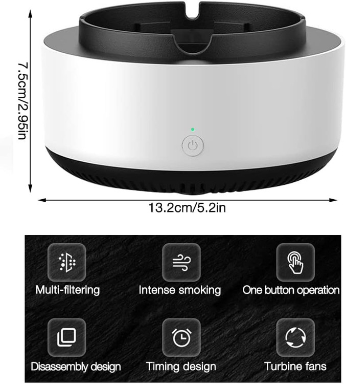 قابل حمل و استفاده آسان: این زیرسیگاری با وزن سبک و ابعاد مناسب به راحتی قابل حمل است و می توانید در هر مکانی از آن استفاده کنید. همچنین این محصول با دو باتری قلمی کار می کند که نیاز به برق را بی نیاز می کند4.