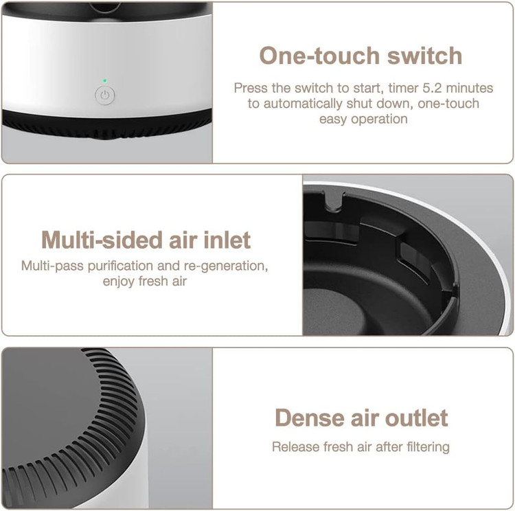 گردش هوای 360 درجه: این محصول با تکنولوژی گردش هوای 360 درجه دود سیگار را به داخل دستگاه می کشد و از انتشار بوی نامطبوع در محیط جلوگیری می کند. این ویژگی باعث می شود هوای محیط همیشه تازه و تمیز باشد.