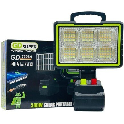 چراغ اضطراری خورشیدی GD SUPER مدل 2305A | پرژکتور شارژی و چندمنظوره برای کمپینگ و سفر